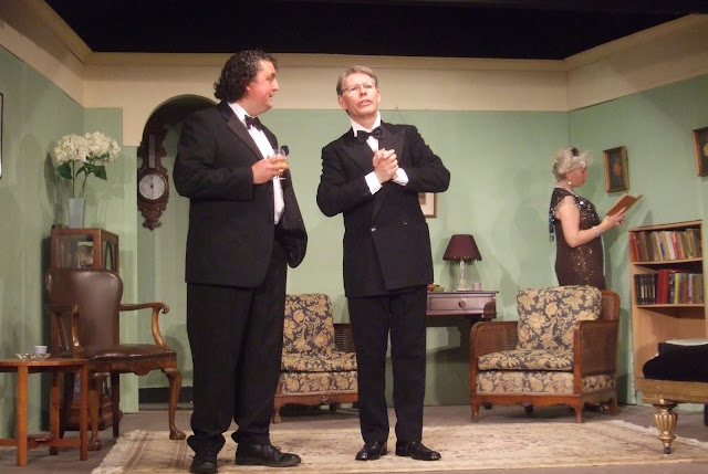 I was not involved with production of The Business of Murder as no costumes were required but of course, I was on hand to provide the food for the Rotarians night and the Saturday night party. Jim did sterling work with the set successfully trying out a new thing using a semi-transparent gauze wall which when lit from behind revealed another room. The play was excellent and all praise to cast and crew.